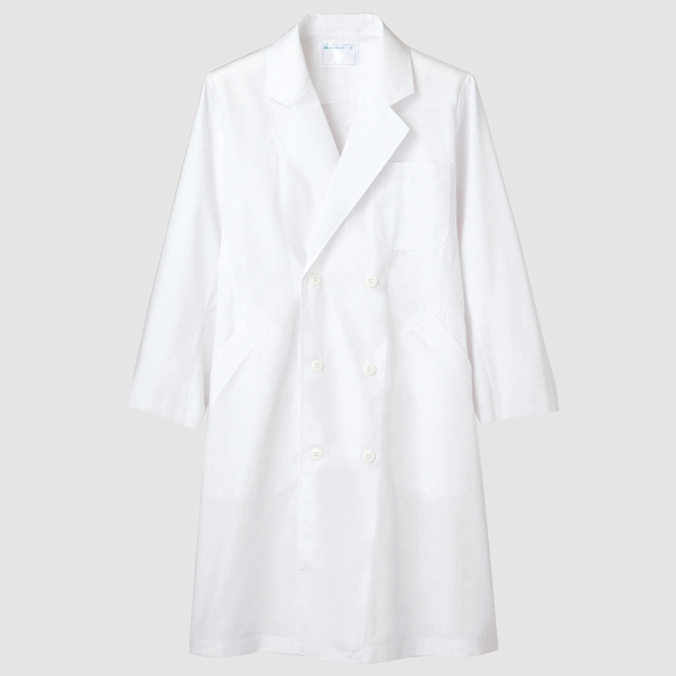まとわりつかず、ソフトな肌触りが心地よいダブルタイプのメンズ長袖ドクターコート。