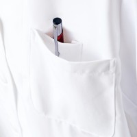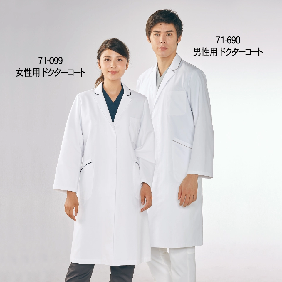 スクラブの上に羽織りやすい、ゆとりあるシルエットのドクターコートです。