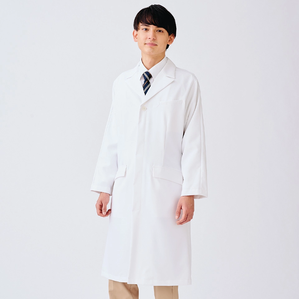後ろラグランで動きやすく、シワになりにくい素材の機能派ドクターコート。