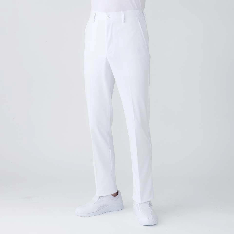 ほどよいゆとりで履きやすさと動きやすさを兼ね備えたナチュラルストレートタイプのメンズパンツ。従来のトリコット素材と比較して約3倍のストレッチ性を実現したハイパーストレッチトリコット素材を使用。なめらかな風合いと軽い着心地を実現しています。裾上げ済みの商品のため、購入後すぐに使えます。