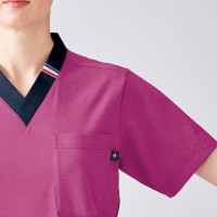 予防衣を重ねて着用するシーンを想定した、Tシャツ感覚の涼しく快適なニットスクラブ。