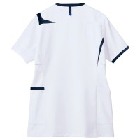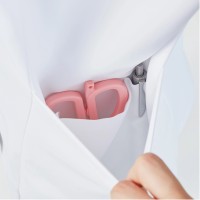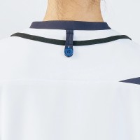 後ろ衿中心にPHSや名札用ストラップのズレを防ぐストラップホールドや衣服内の通気を高める脇下のベンチレーション、