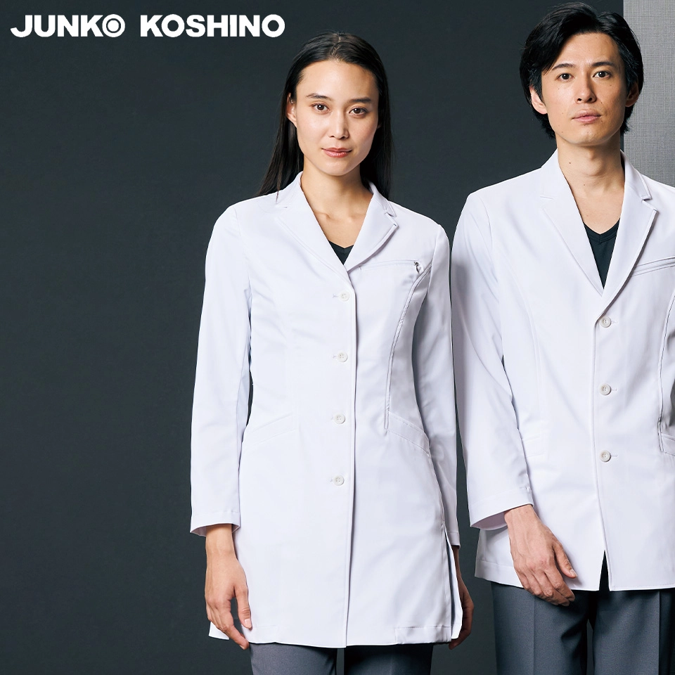 『コシノジュンコ』デザインのシンプルなテーラーカラーのショート丈ドクターコート。