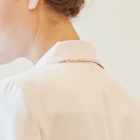 ローラ アシュレイのオリジナルボタン仕様、左袖にロゴ刺繍入り。