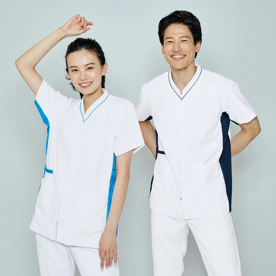 年齢、体型、性別を問わずどんな人でも着やすいデザインと機能性を追求したスクラブです。
