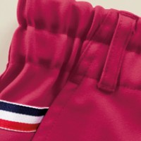 ウエストベルトには伸縮性に優れたゴムを使用し、長時間の着用でもしめつけを感じさせないゆるめの設定です。ウエストのドローコードで調節もできます。