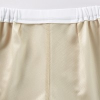 ストレッチの効いた素材と脇ゴム仕様で動きやすく快適です。ヒップ部分にメッシュ裏地を施し、下着の透けを防止します。