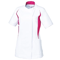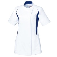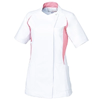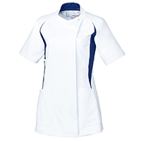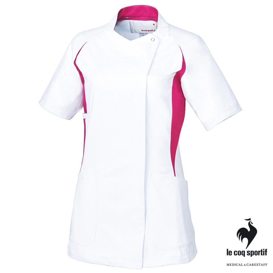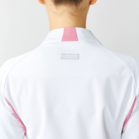 白衣に求められる薄さと透けにくさが両立した高機能素材シルキートリコットで仕立てたジャケット。スポーツブランドらしいシャープなデザインで、信頼や安心を伝えます。