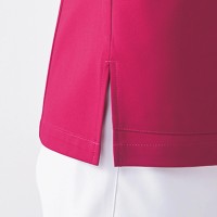 胸元の開きを浅く設計し、視線を気にせず着用できるデザインです。