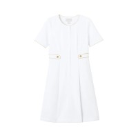 上品にスタイルアップするデザインと清潔感のあるカラーが魅力のワンピース。