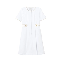 上品にスタイルアップするデザインと清潔感のあるカラーが魅力のワンピース