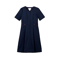 履いて着られる前ファスナー仕様で着脱が簡単。ウエスト位置を高く見せることで自然とスタイルアップ、さらに少し絞っているので細見え効果もあります。
