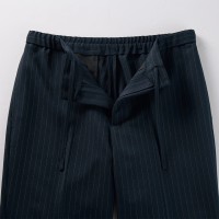 工業用洗濯可能でイージーケア性も兼ね備える素材を使用。シルエットは綺麗に見えながらも、脇ゴム仕様でウエストの窮屈感がなく快適な履き心地。