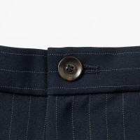 ウエストドローストリング入りでウエストの調整も可能。シックに見えるよう後ろポケットはスーツと同じ玉縁に、脇もスリットポケットでエレガントな雰囲気に。