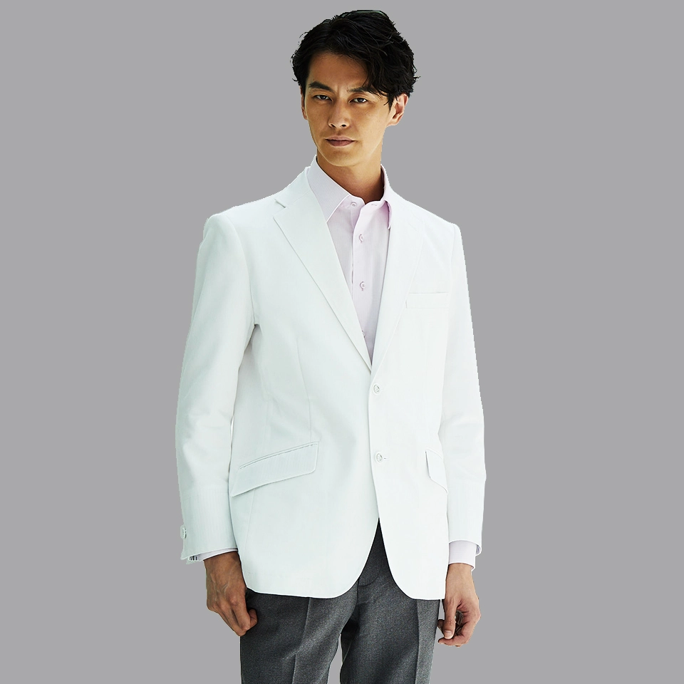 仕様:内ポケット付き(胸・腰)・ペン差し付・袖本開き・背裏付パイピング始末・制菌加工・抗ウイルス加工・制電