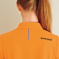 肩甲骨のラインに配色した刺繍ロゴも人気の理由。背面にもさりげなくルコックスポルティフらしさを香らせて上質なバックスタイルを作ります。