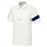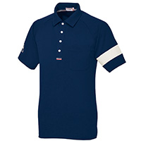 左袖の太めのラインが印象的な男女兼用ニットシャツ。