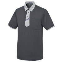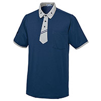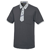 きちんとした印象を高めるネクタイ風前立てが特徴のニットシャツ。