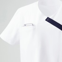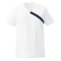 シンプルなホワイトに左胸のグログランテープのアクセントが効いた、個性的でありながら馴染みを感じるデザイン