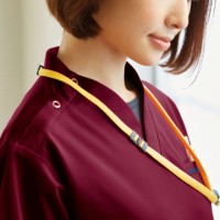 腕の動きをスムーズにする脇の切り替えやストラップが首に直接あたらない衿デザイン、胸ポケットの収納を妨げない名刺専用ポケットなどの医療現場ならではの機能が充実しています。