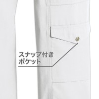 仕様:紐付き総ゴムウエスト/ハンディーループ/深めの両サイドポケット/右側ポケット2つ/左側ポケット2つVスナップ付きポケット1つ/ストレートカット