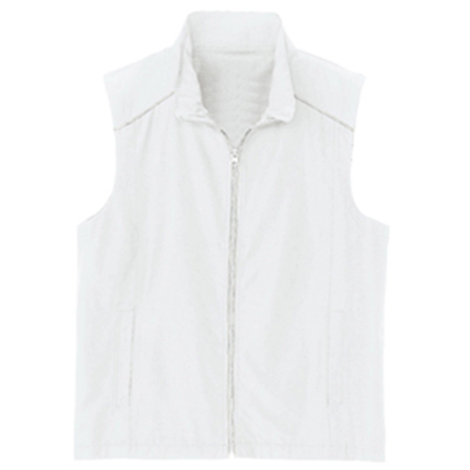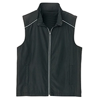 反射パイピングと背中反射パイピング、背裏メッシュ、背裏メッシュ、チンガード仕様。作業着にぴったりのベストです。