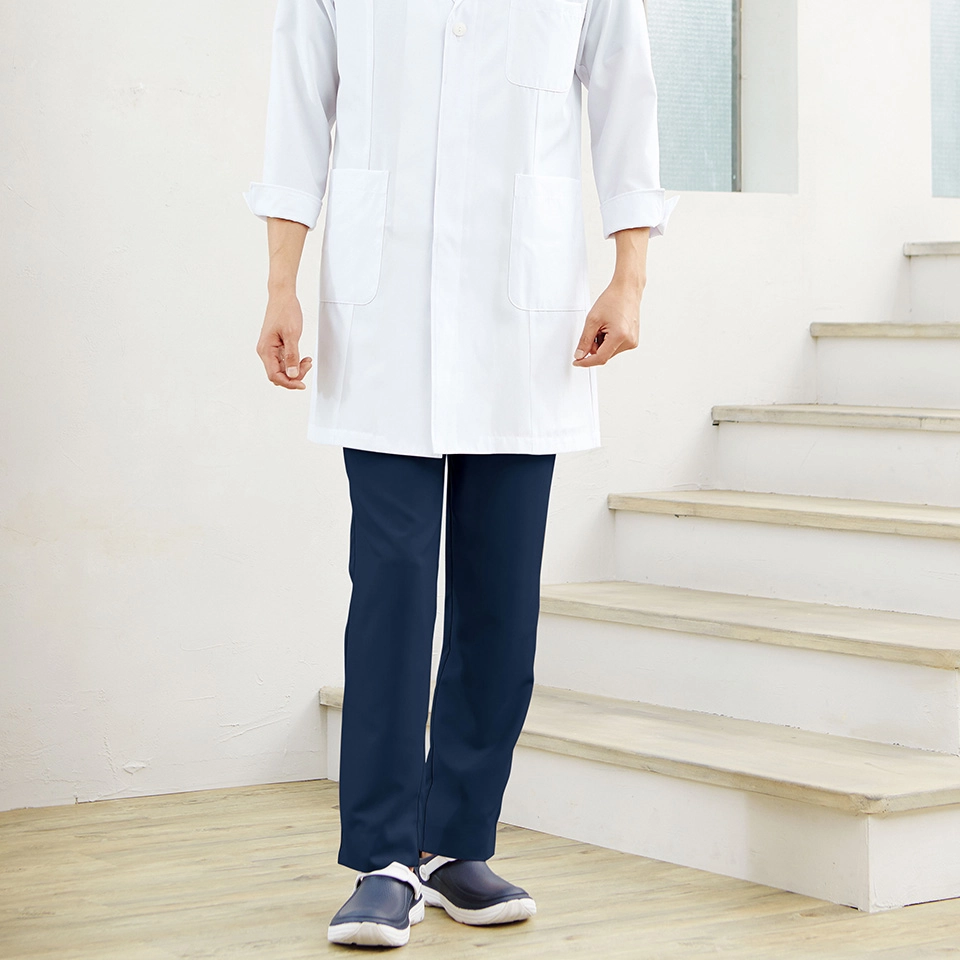 色はホワイト、モカ、ネイビーの3色で、コーディネートしやすいメンズパンツ。