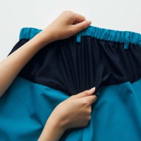 素材:ジオポプリン(ポリエステル100%)、ジアスムース(ポリエステル100%)仕様:腰ニット素材/総ゴム/両腰ポケット/後側裏地メッシュ/ベルトループ付/ウエストひも入り/裾ゴム入り