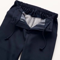 仕様:腰ニット素材/脇後ゴム/両脇ポケット/後側裏地メッシュ/ベルトループ付/ウエストひも入り/前ファスナー