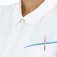 清潔感のあるきちんとした印象を与えるボタンダウンのナースジャケット。