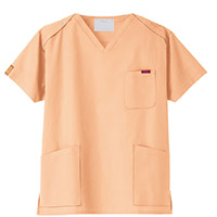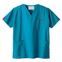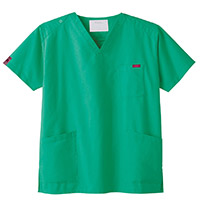 生地は、綿35%・ポリエステル65%の混紡素材。平織の定番を使用してストレッチ性はないものの、若干広めの身幅で着用時に動きやすいスクラブです。