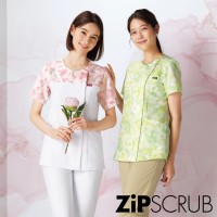 やさしく、患者さんにやすらぎを与える花柄のジップスクラブ