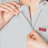現場の声から生まれた「羽織って着る」スクラブ。着脱がスムーズ&スピーディ!着脱時に化粧付着、髪の乱れを防げるので女性におすすめです。