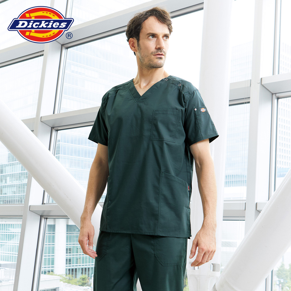 大人気Dickiesスクラブ。ラフな着心地と動きやすさを追求!落ち着いたクールな色味が魅力的。