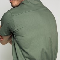 吸湿速乾性があり、動きやすいストレッチ素材の生地採用。洗いざらしのような独特の風合いも魅力。