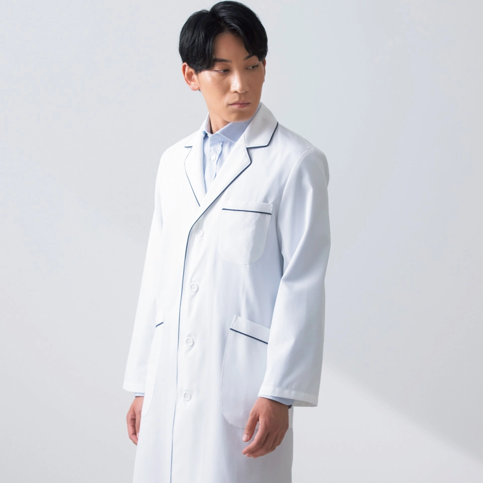 テレビドラマで人気を博したあのデザインを定番化!ロング丈の男性用ドクターコート