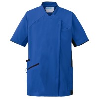 アシンメトリーな配色デザインがポイントの男女兼用スクラブジャケット。