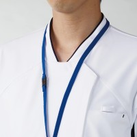 アシンメトリーな配色デザインがポイントの男女兼用スクラブジャケット