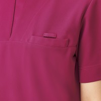 胸元のボタンはベースカラーと異なるカラーにすることで留め忘れも防ぎます。