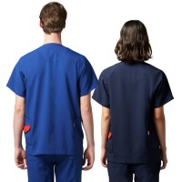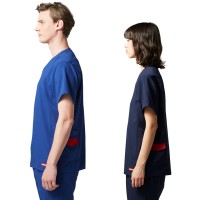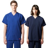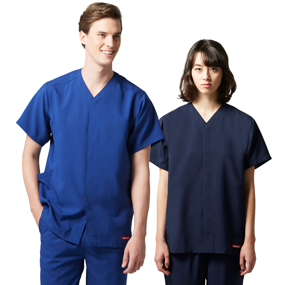 ニオイを抑え、清潔な状態をキープ。現場の声から誕生した前開きタイプのオリジナル・スクラブ(男女兼用)。