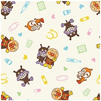 アンパンマンの人気キャラクターと病院のアイテムを散りばめたメディカル柄で、子ども達も笑顔100倍!