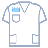 縫い合わせ部分からの血液等の侵入および糸くず等の異物混入防止を目的に2本針始末をし、袖の縫い合わせ部分は、縫い端を布で覆い隠すバイアステープ始末を採用し、血液等の侵入および糸くず等の異物混入を徹底的に防止します。