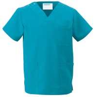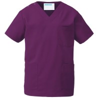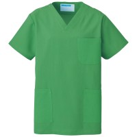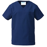 ポリエステル100%でありながら、綿タッチの肌触りと優れた吸汗・速乾性があり、下を向いても中が見えにくい開きの浅いV衿に、着脱が楽で脇が見えにくいセットインスリーブ。女性でも安心して着用できます。