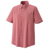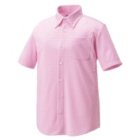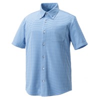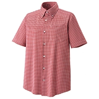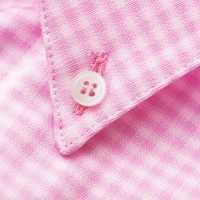 白いボタンをチェックと同色の糸で留めた、こだわりのディティールがおしゃれなボタンダウンシャツ。