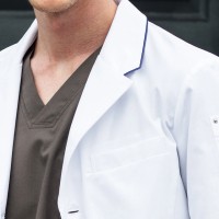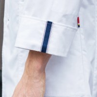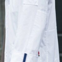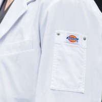 襟元と袖口のデニム地ラインがディッキーズらしいカジュアルなドクターコートです。
