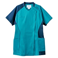 明るいカラーとアンシンメトリーデザインでスポーティーな印象のナースジャケット。