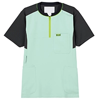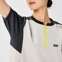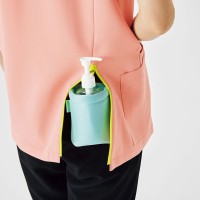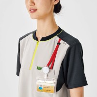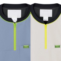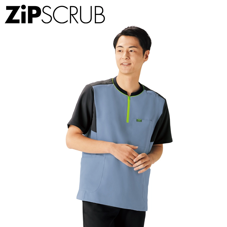 現場の声から生まれた男女兼用のジップアップスクラブ。OT・PT独特の動作や悩みをヒアリングし現場検証を経て生まれた専用のデザイン。