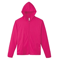 紫外線対策にも効果的なドライ素材のジップパーカー。