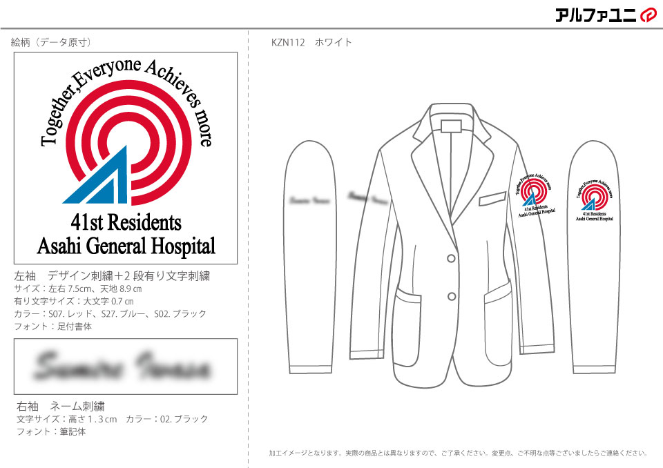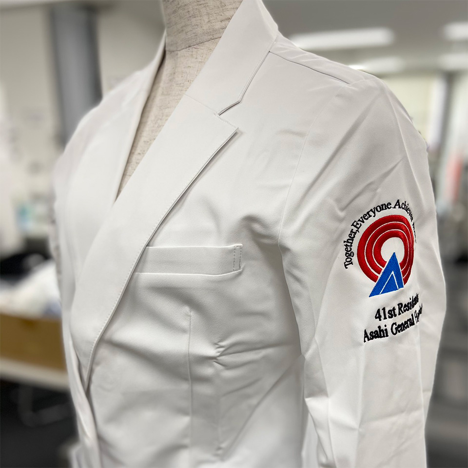 デザイン刺繍 旭中央病院2021様 Cランクドクターコート円形(丸型)デザイン袖 旭中央病院2021様ドクターコートロゴマーク刺繍デザインのご紹介です。このたびは製作のご依頼ありがとうございました。 このデザインについて 【刺繍加工のポイント】 円形の3重線はサテンで三角形部分はたたみ打ちとなっています。 ロゴマーク部分とロゴ下の2段の文字は上と下を2回に分けて刺繍しています。 直径8cmの円形が袖刺繍の最大サイズとなりますので、刺繍枠に収まらないためです。 刺繍位置 :左袖/右袖 刺繍サイズ:左右7.5cm 天地8.9㎝/高さ1.3㎝ 刺繍カラー:3色 レッド・ブルー・ブラック/ブラック 使用ドクターコート:BIANCA BY KAZEN KZN112 レディスブレザー この記事をシェア