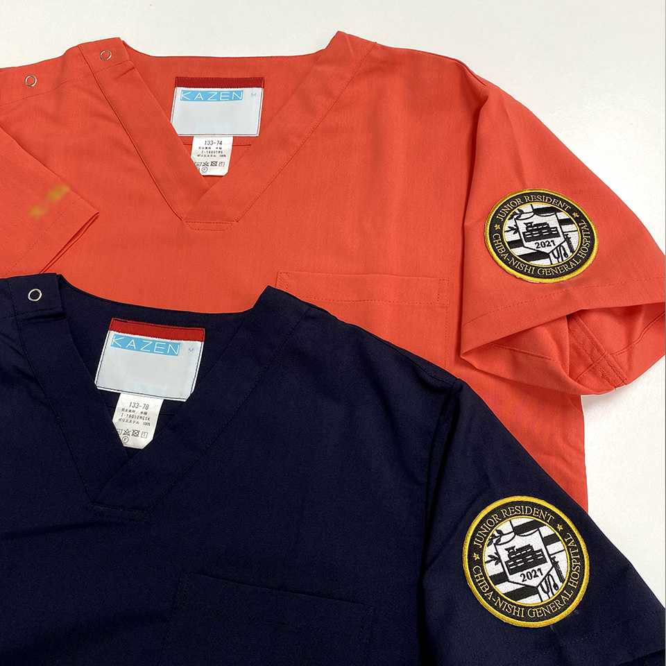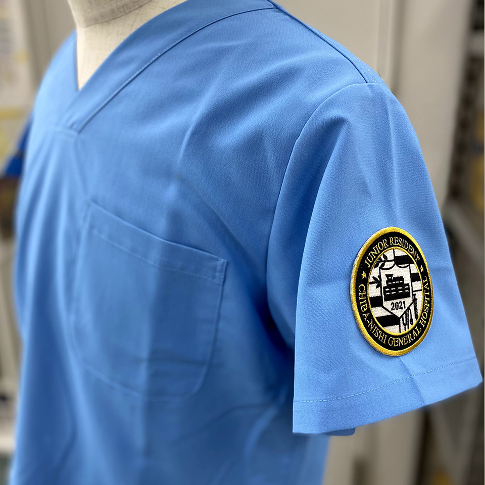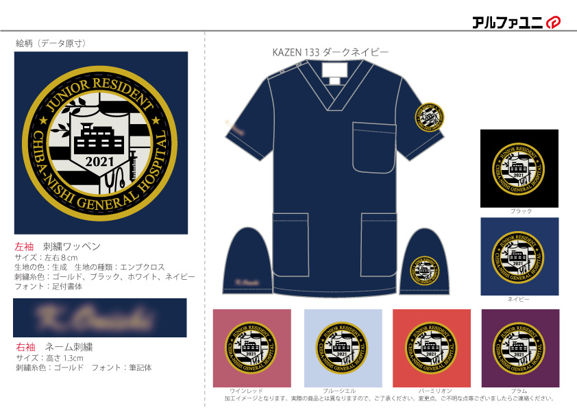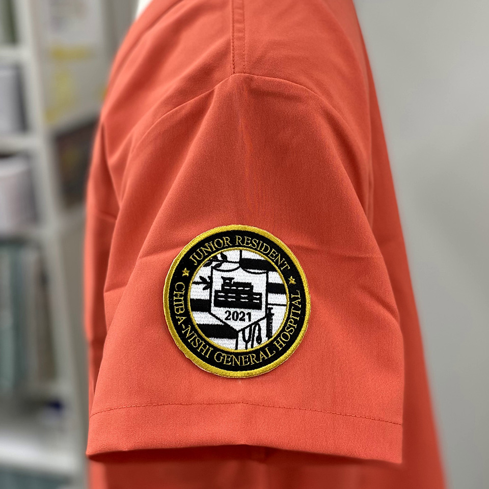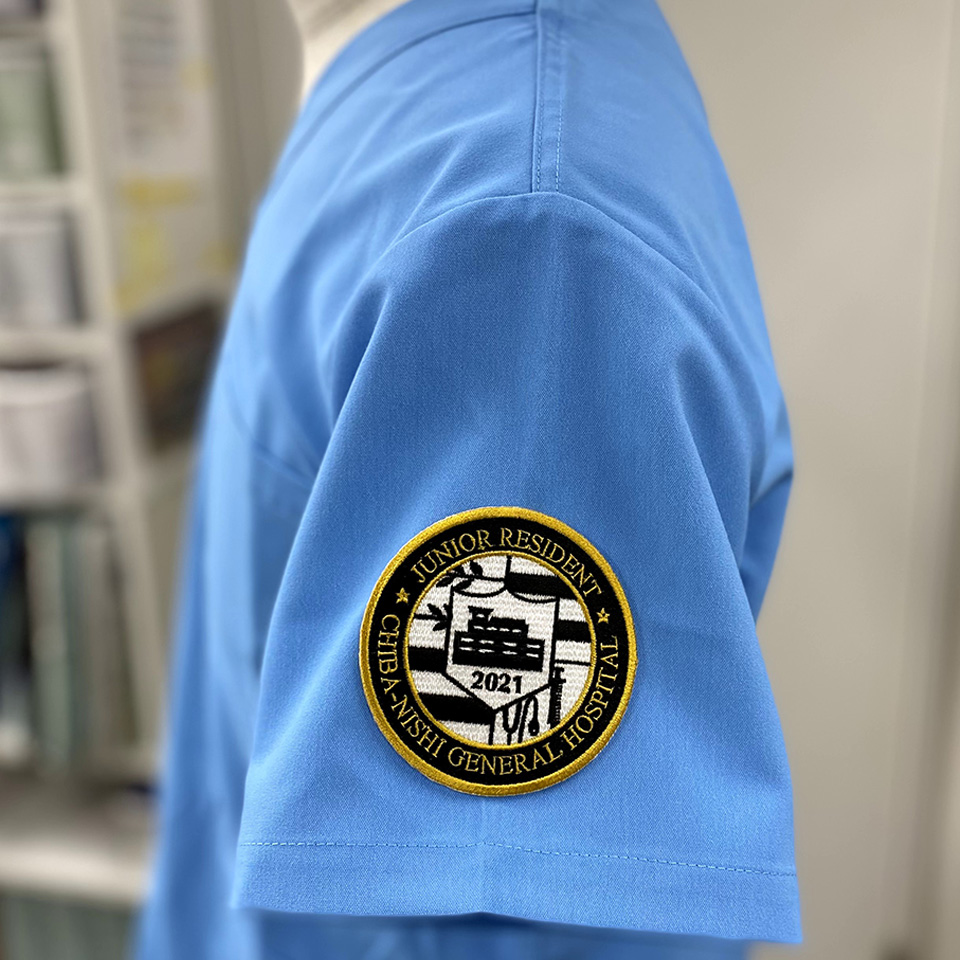 刺繍ワッペン 千葉西総合病院研修医2021様 133 かっこいい円形(丸型)デザイン建物星注射器細かい文字聴診器袖複雑タイプ 千葉西総合病院研修医2021様スクラブロゴマーク刺繍ワッペンデザインのご紹介です。このたびは製作のご依頼ありがとうございました。 このデザインについて 【刺繍加工のポイント】 ホワイトやネイビーの背景部分やブラックの飾り線の太い部分はたたみ打ちで、それ以外はサテン打ちやステッチとなっています。 外側の帯部分はすべてたたみ打ちで埋めています。 デザイン的にかなり針数が多くなっており、17000針を超えています。 刺繍位置 :左袖 刺繍サイズ:左右8cm 刺繍カラー:4色 ゴールド、ブラック、ホワイト、ネイビー 生 地:エンブクロス 生地カラー:生成 使用スクラブ:KAZEN 133スクラブ この記事をシェア